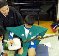◎ しゃみせん ◎ NPO法人人形浄瑠璃文楽座では、所属する 文楽技芸員が、教育機関や公共施設などに赴き、 文楽の普及活動を行っています。 |