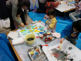 「リトミック」「スライム・おりがみ〕コーナーで参加しました。