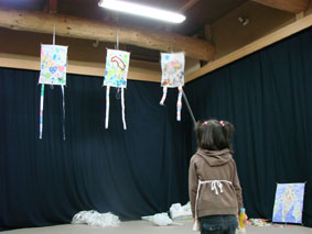 空を海に見立てたイメージづくりから、様々な技法を工夫して 世界に一つしかない凧を作りました。