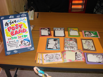 ポストカードなど。昨年子どもセンターで個展開催。