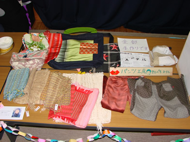 イラストレーターのポストカード・織物作家のマフラー・パンツ・カバン・手作りお菓子など |